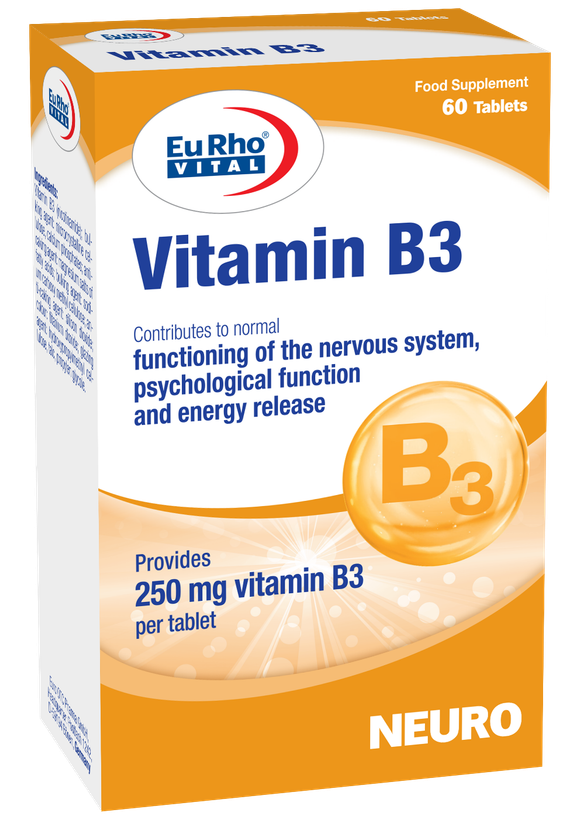 قرص ویتامین B3 یوروویتال یک مکمل غذایی است که حاوی 250 میلیگرم ویتامین B3 (نیکوتینامید) است.