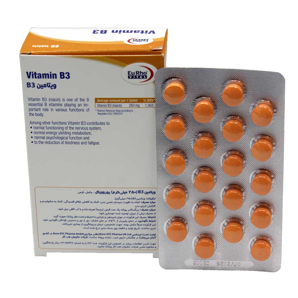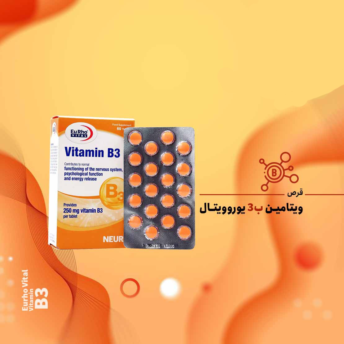 قرص ویتامین B3 یوروویتال یک مکمل غذایی است که حاوی 250 میلیگرم ویتامین B3 (نیکوتینامید) است.