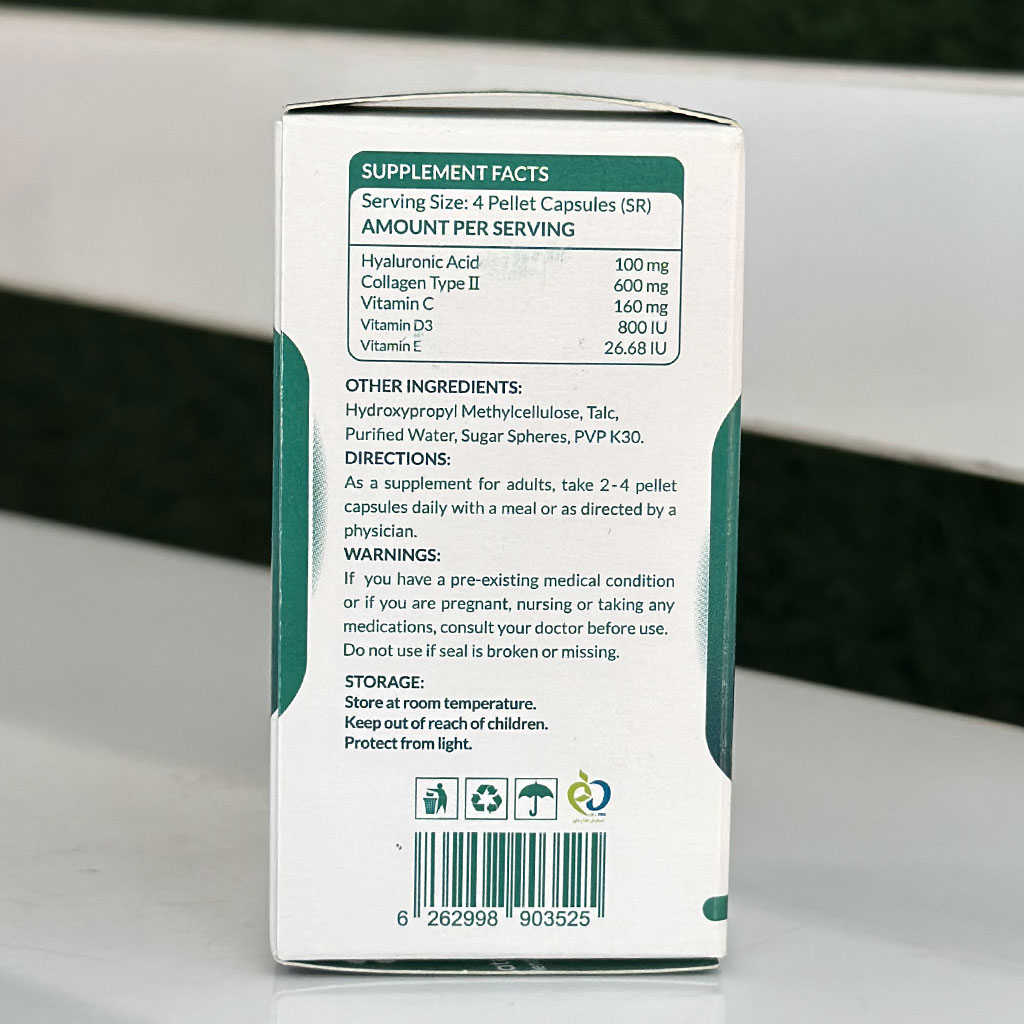 کپسول کلاژن نوع 2 و هیالورونیک اسید | سلامت استخوان‌ها + غضروف ساز + سلامت پوست