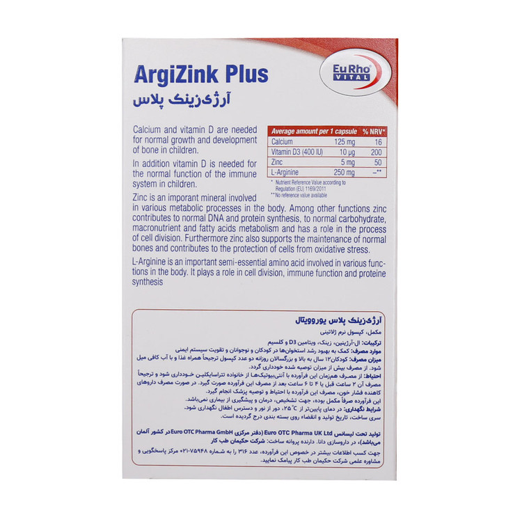 آرژی زینک پلاس یوروویتال | زینک+ویتامین دی۳+ کلسیم+ ال آرژنین