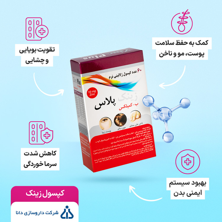 کپسول زینک پلاس ۱۰ دانا | ب کمپلکس | پوست ، مو ، ناخن ، سیستم ایمنی