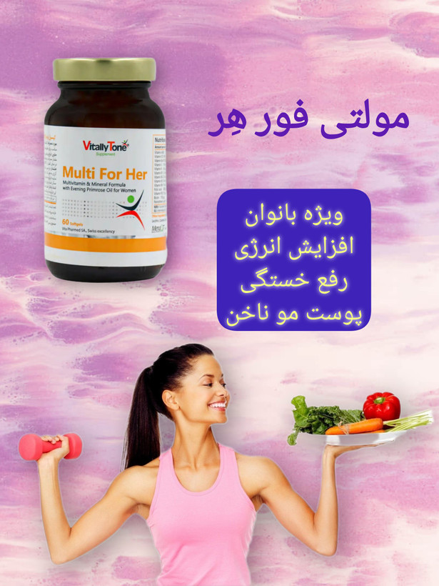 مولتی فورهر ویتالی تون یک مکمل غذایی است که برای تأمین نیازهای بدن بانوان فرموله شده است و به حفظ سلامت عمومی، تقویت سیستم ایمنی، و بهبود سلامت پوست، مو و ناخن کمک میکند. همچنین، این مکمل میتواند به تنظیم هورمونها و کاهش علائم سندروم پیش از قاعدگی و یائسگی کمک کند.