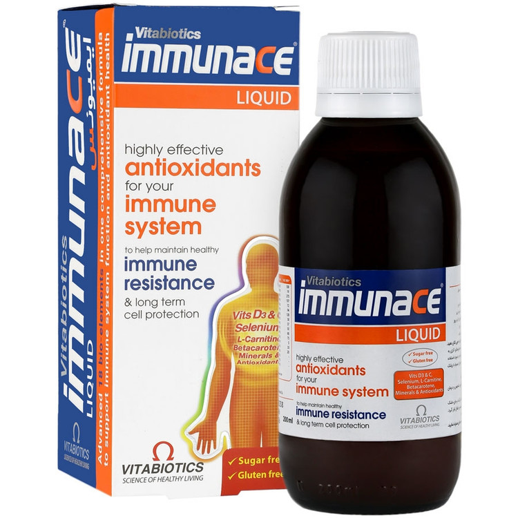 شربت ایمیونس (Immunace) نوعی مکمل غذایی قوی حاوی آنتی اکسیدان و ویتامین برای تقویت سیستم ایمنی بدن کودکان است. این شربت حاوی بتاکاروتن، ال-کارنیتین، آنتی اکسیدان، ویتامین و مواد معدنی و فاقد طعم دهنده و رنگ مصنوعی است.