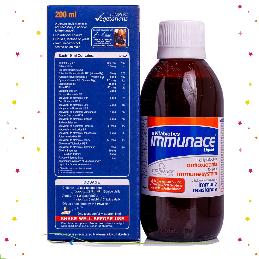 این شربت با داشتن ویتامینها و ریزمغذیهای مورد نیاز بدن، مولتی ویتامین تخصصی تقویت سیستم ایمنی بدن به شمار میآید و از بدن در برابر بیماریها و عوامل مختلف آسیبرسان محافظت میکند.