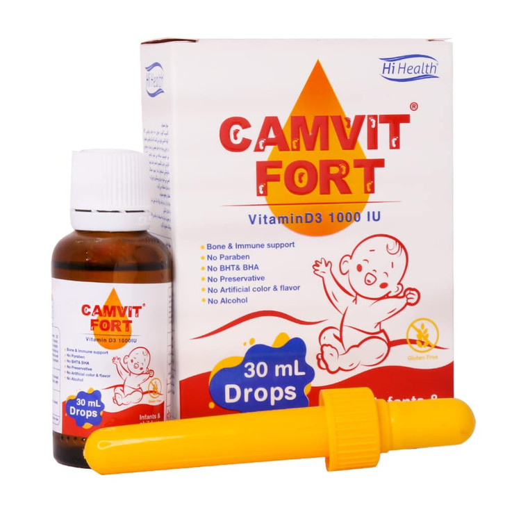 🌟قطره کامویت فورت های هلث به تامین ویتامین دی مورد نیاز بدن جهت استحکام و تقویت استخوانها، دندانها و سیستم ایمنی بدن فرموله شده و در رشد و تقویت بدن کودکان و نوزادان بسیار مفید است.